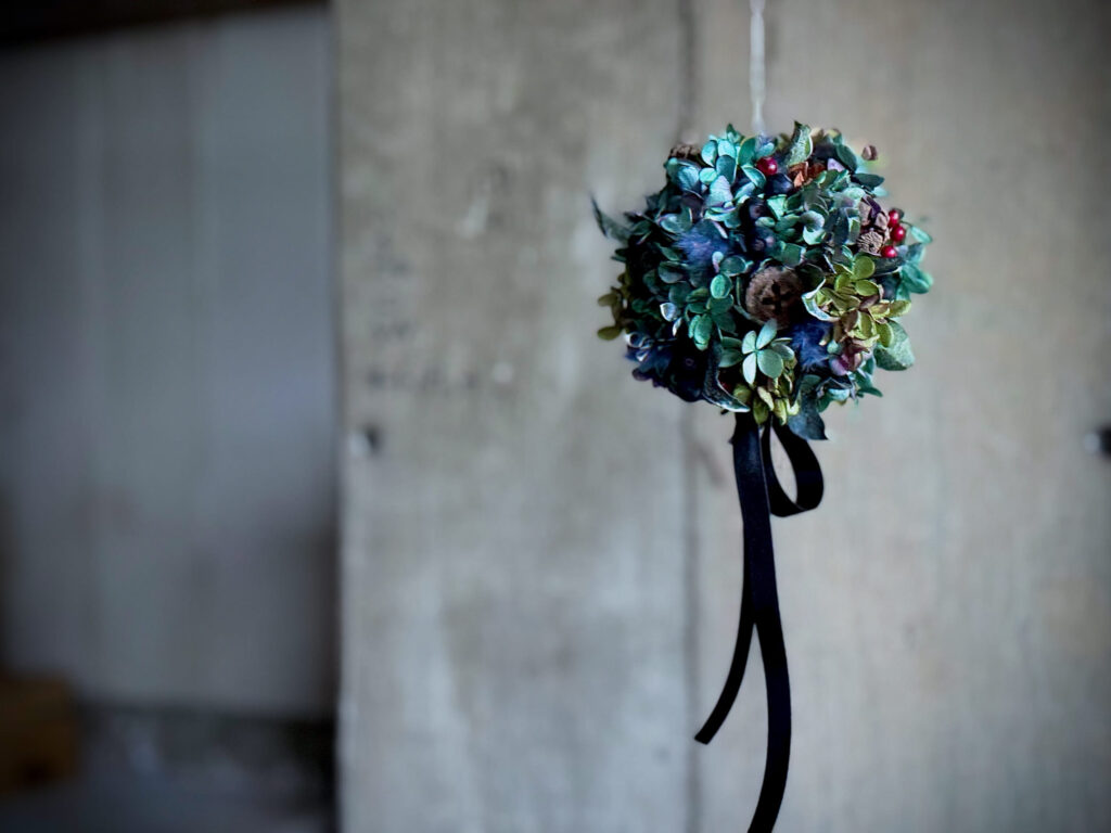 本物の花や木の実、鉱物等を使用したアクセサリーをメインに、リース、スワッグ等も作成しています。
