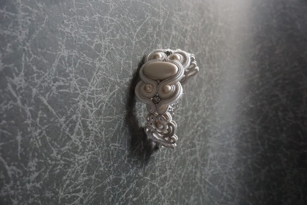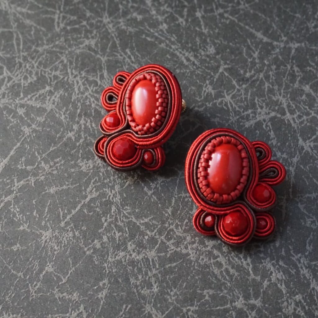 中世ヨーロッパの貴族の正装に施されたソウタシエコードの立体刺繍の技術を装身具に仕立てています。デザインから全て1人で制作。繊細な手仕事とそのクラシカルで上品なデザイン性をぜひ手に取り見て頂きたいです。