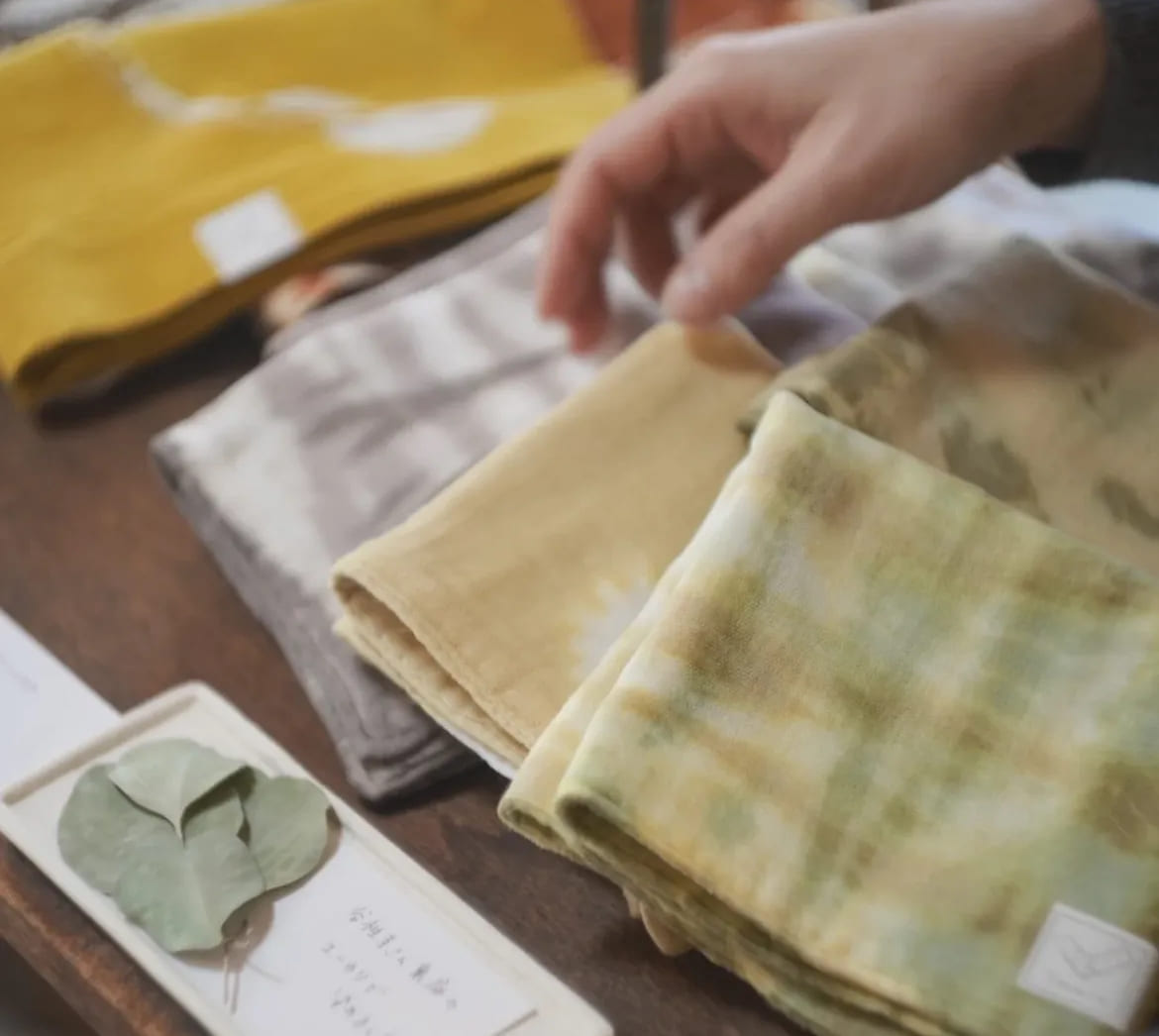 玉ねぎやオリーブなどの天然素材を使った草木染めの手法で、ひとつひとつ丁寧に手染めをしてつくっています。身近なものにも歴史や伝統が佇んでいる、そんなことを感じられるものづくりを目指しています。