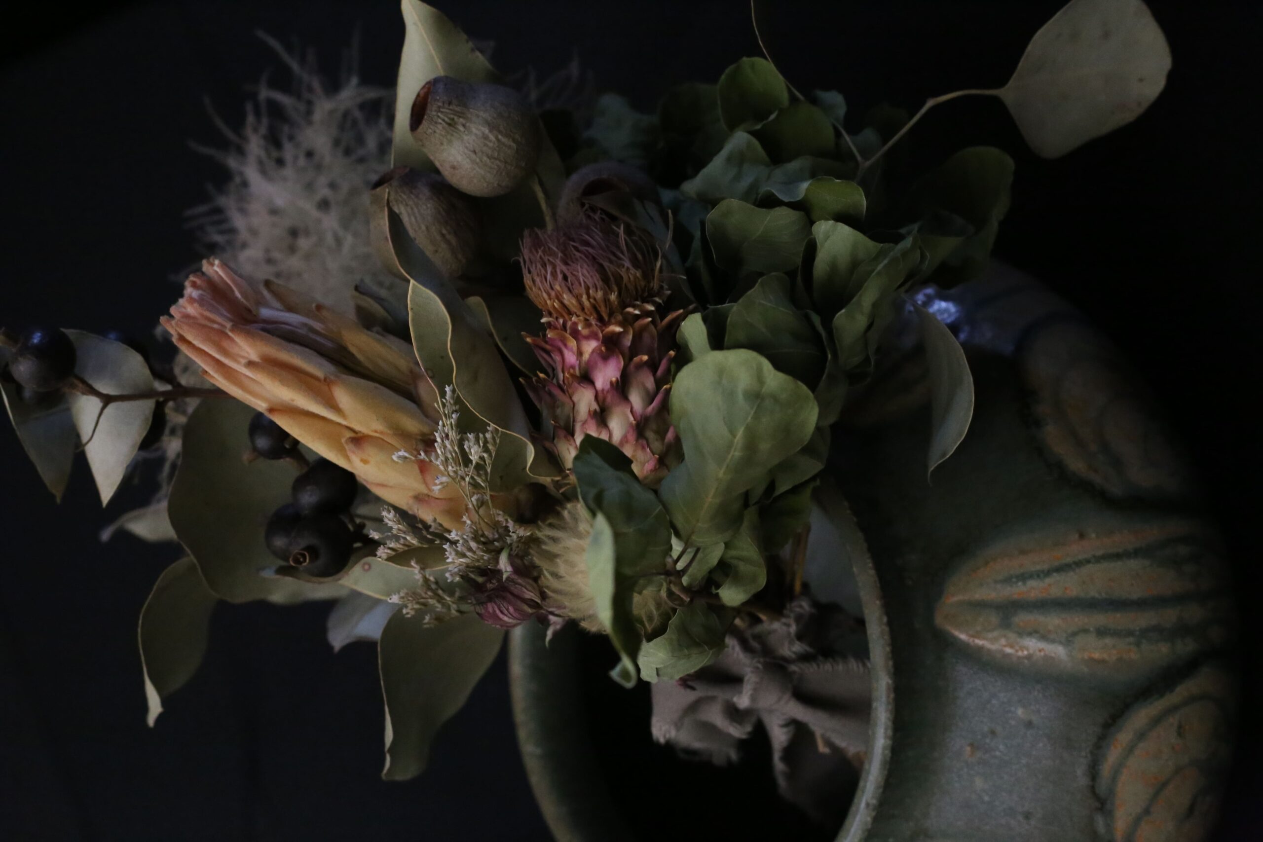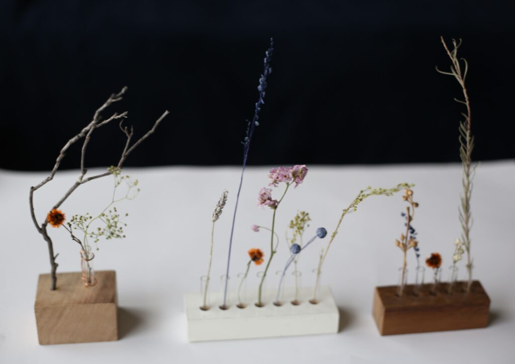 「植物の飾り方がわからない」というお声を受け、器と植物の調和を楽しめるセットをご提案しています。今回様々な種類の花器に出逢われる事を想定し、すぐに飾れる花束やセミオーダーのミニブーケの制作も行います。器と植物の新たな出逢いを是非お楽しみください