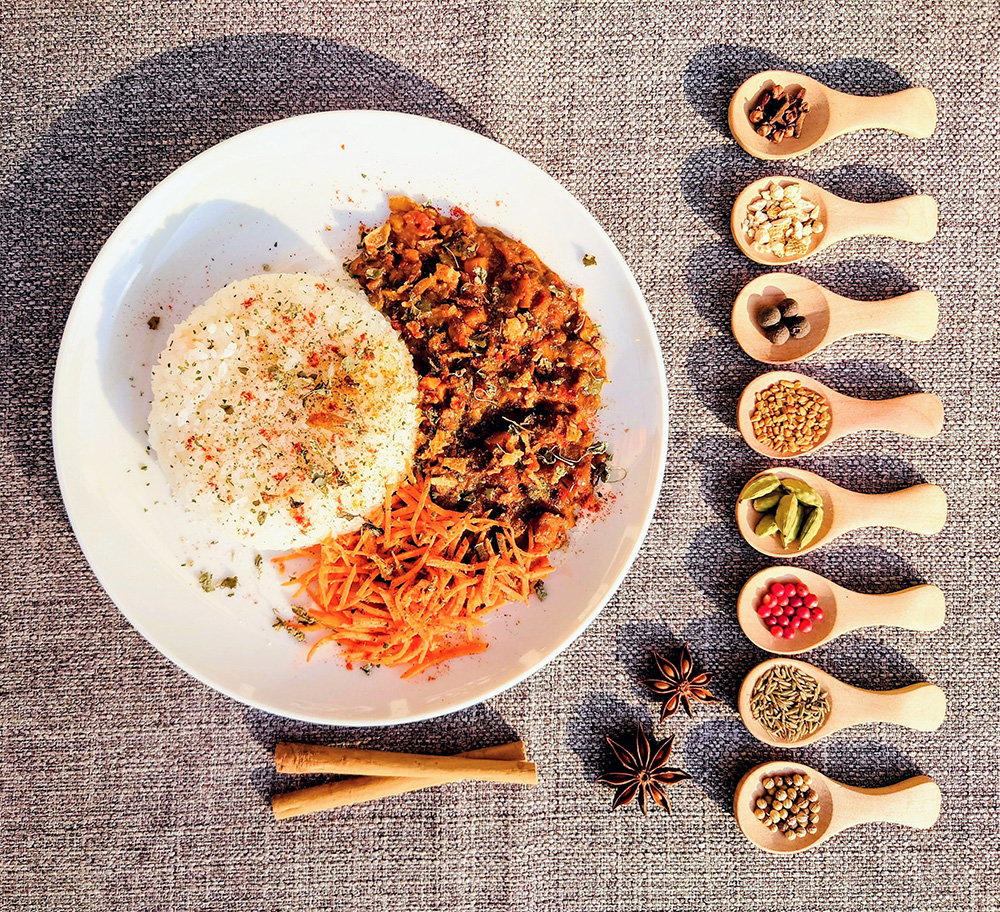 スパイスコーヒー・クラフトコーラ・チャイ等、スパイスそれぞれの特色をいかし、アレンジしたオリジナルドリンクやビーガンのスパイスキーマカレーを販売。
