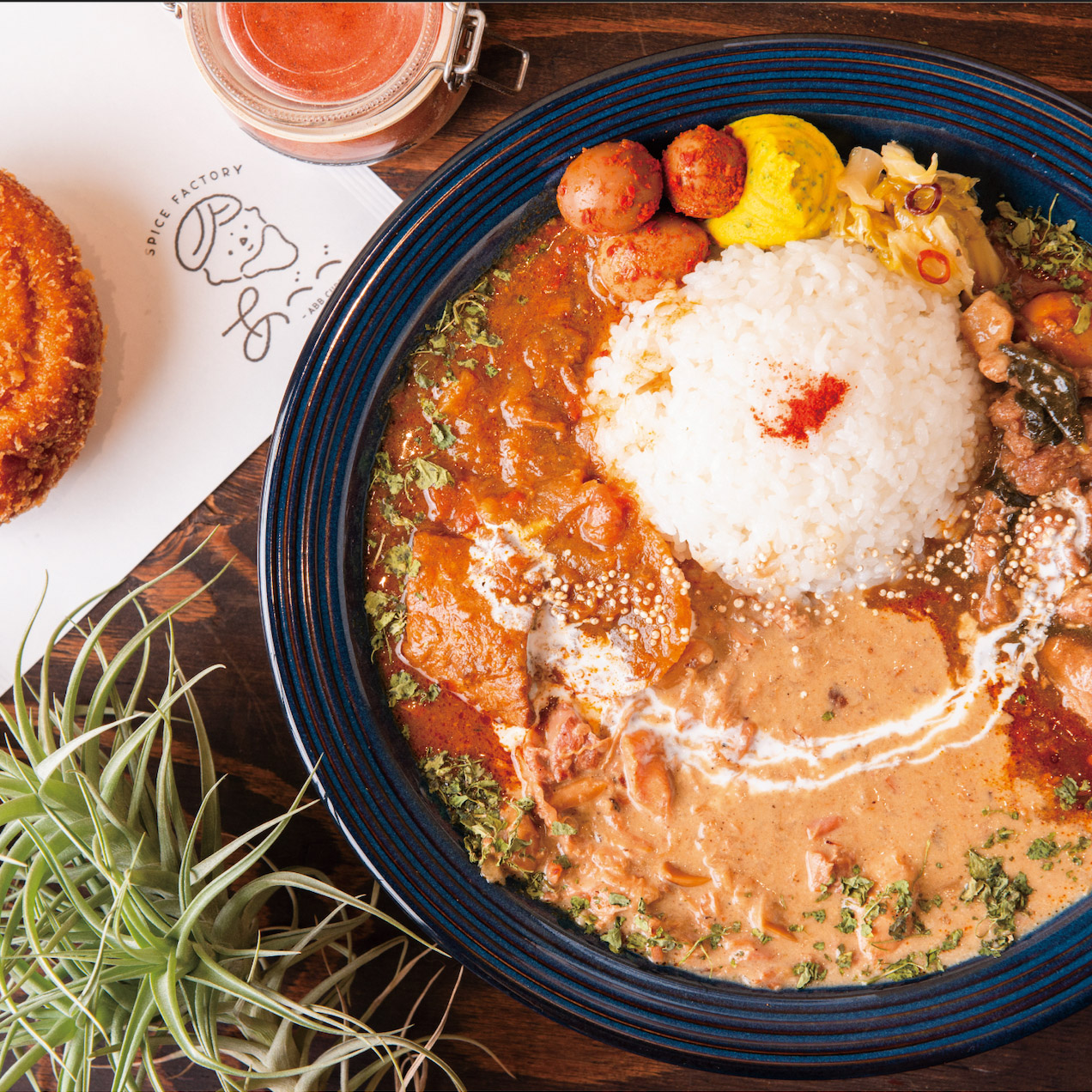 和出汁を使用したカレーなど、日本人に馴染のある料理にスパイスを加えた創作カレーなどを展開。