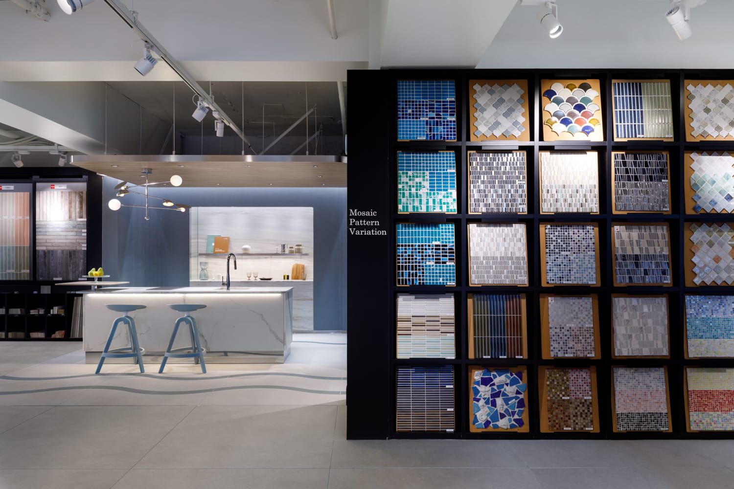 名古屋モザイク工業は、「生活を美しく彩るデザイン」と「人と環境に優しい機能性」を兼ね備えた、セラミックタイルを中心とする建築材料を提供するブランドメーカーです。さまざまな商品の企画開発・生産・輸入・輸出を通し、国内外のお施主さまから建築家・デザイナーの皆さままで、あらゆる空間創造に寄り添うソリューションを提案し、高いデザイン性と優れた機能性で、豊かな生活環境の実現に貢献し続けます。