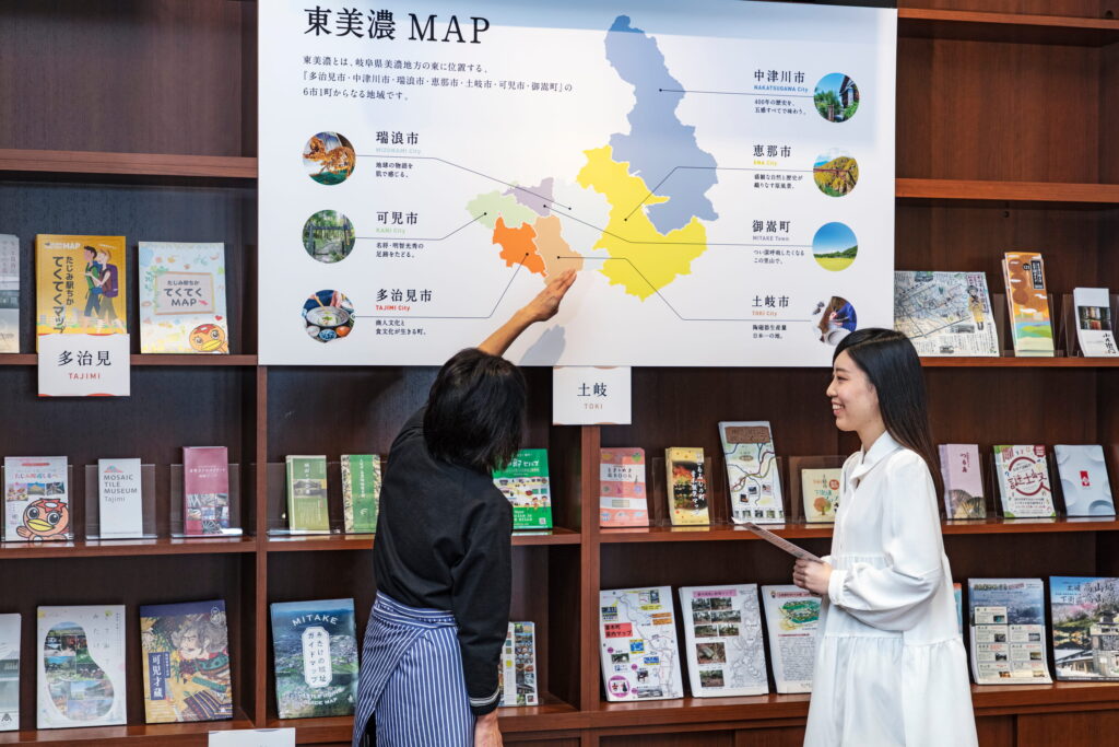 土岐市観光協会が運営する「もとてらす東美濃」はテラスゲート土岐まちゆい内にある観光拠点施設です。